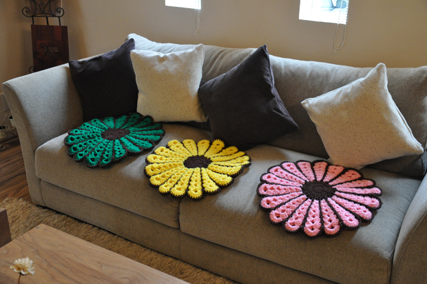 極太の毛糸を手編みした手作り座布団です。2枚の座布団を縫い合わせて作っているので、厚みがあり座り心地も良く、毛糸なので冬でもポカポカ。カラーが選べるので、お部屋のインテリアに合わせたり、ご家族で一人ひとつずつ使うのもオススメです。