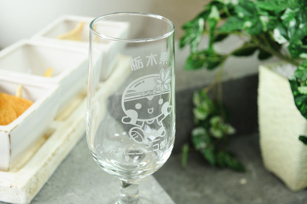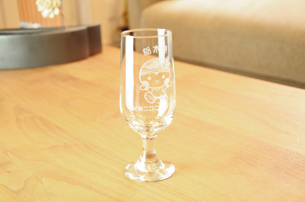 気が抜けにくい形状で、ビールが美味しく飲めるグラスです。可愛らしい御当地のマスコットがエッチングされています。